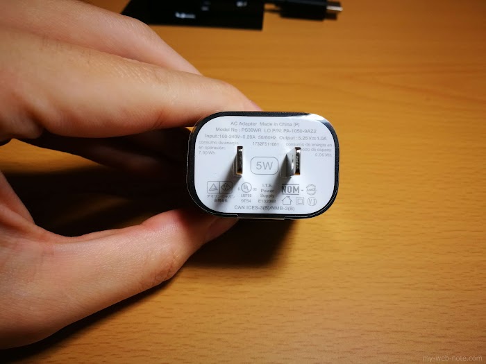 電源アダプタは5.25V/1.0A/5W。Fireタブレットとは微妙に違う。